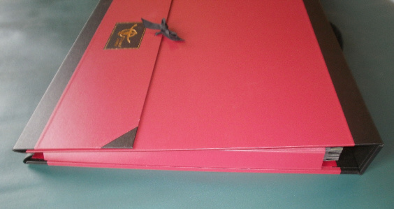 Handmade decorative marble end papers were added to the inside front and back of the book in sympathy with the colour scheme of the book